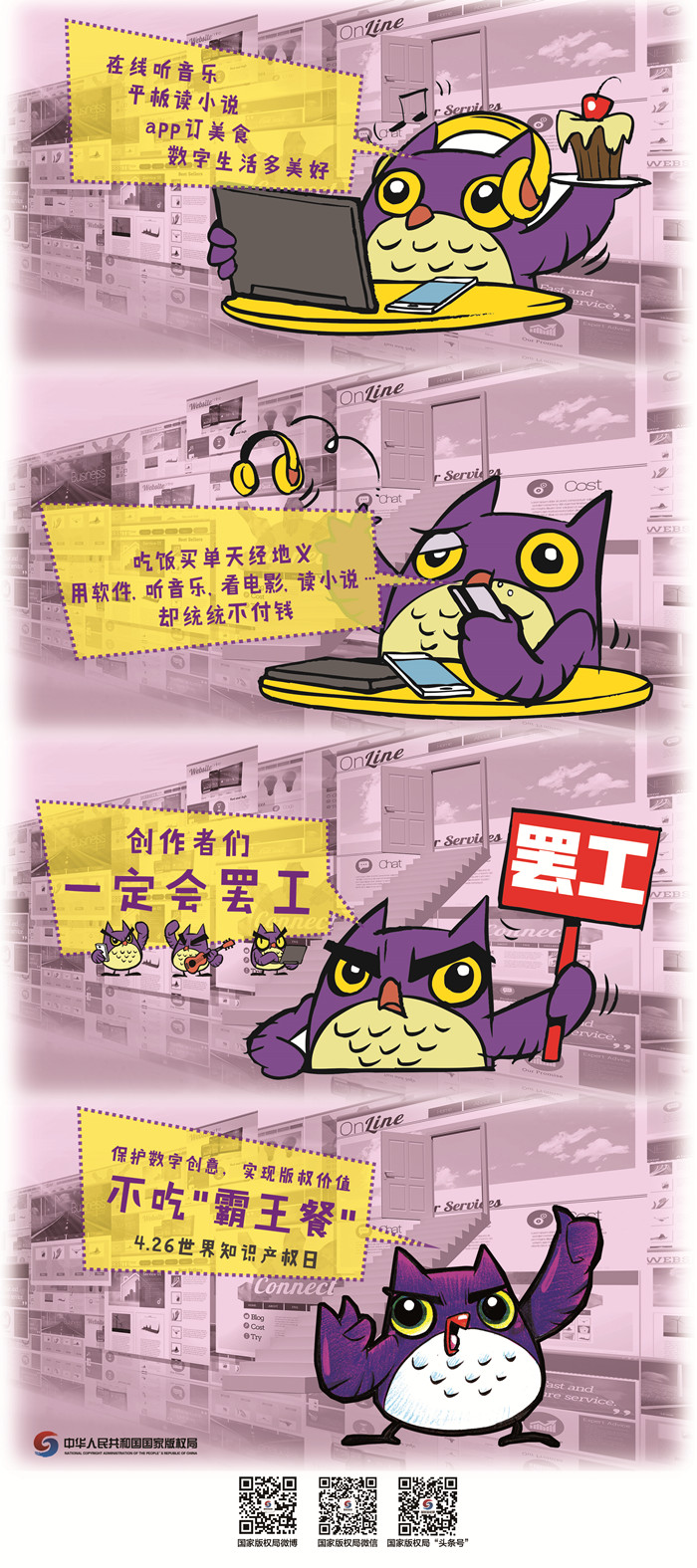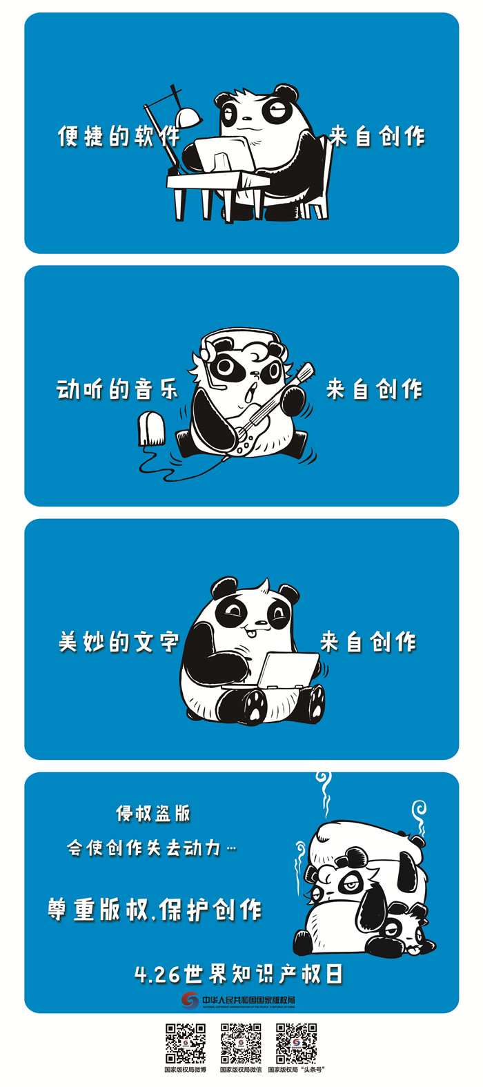 注:宣传资料可用于版权公益宣传。国家版权局享有相关宣传资料的全部版权,使用时请不要删除、修改图中国家版权局的标识及二维码。